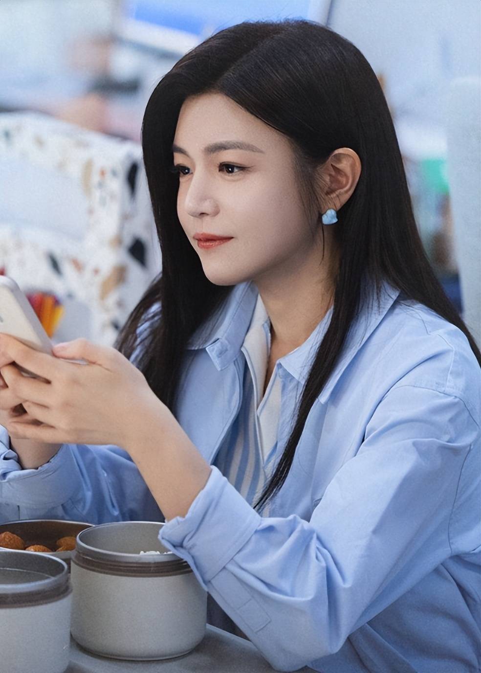 陈妍希饰演的女主岑矜眼神一直亮亮的,动作神态中散发着柔和媚的姐姐气质。