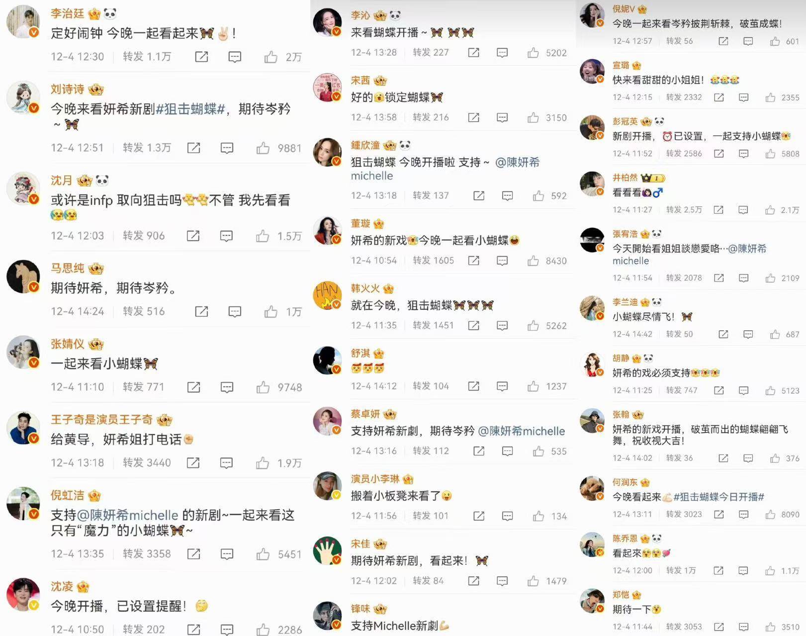 不少明星都集体为陈妍希的新剧宣传打call。