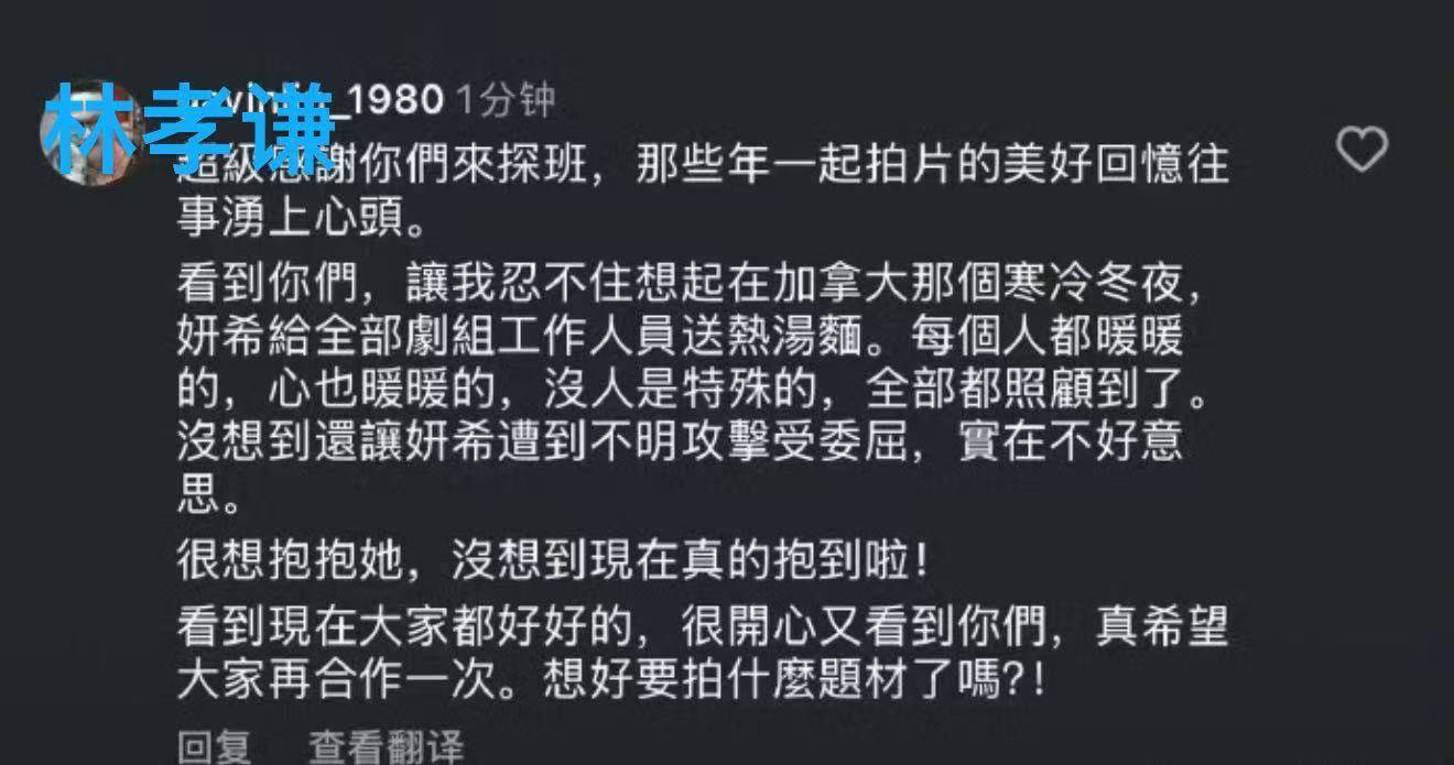 之后电影《跟你老婆去旅行》的导演林孝谦在社交平台上亲自为陈妍希当年的“汤面事件”辟谣。