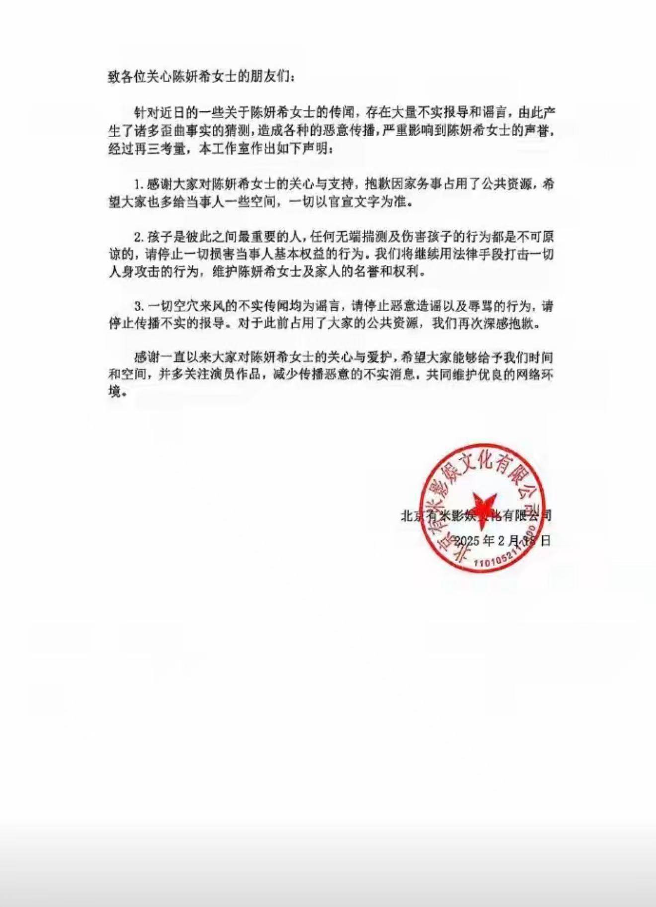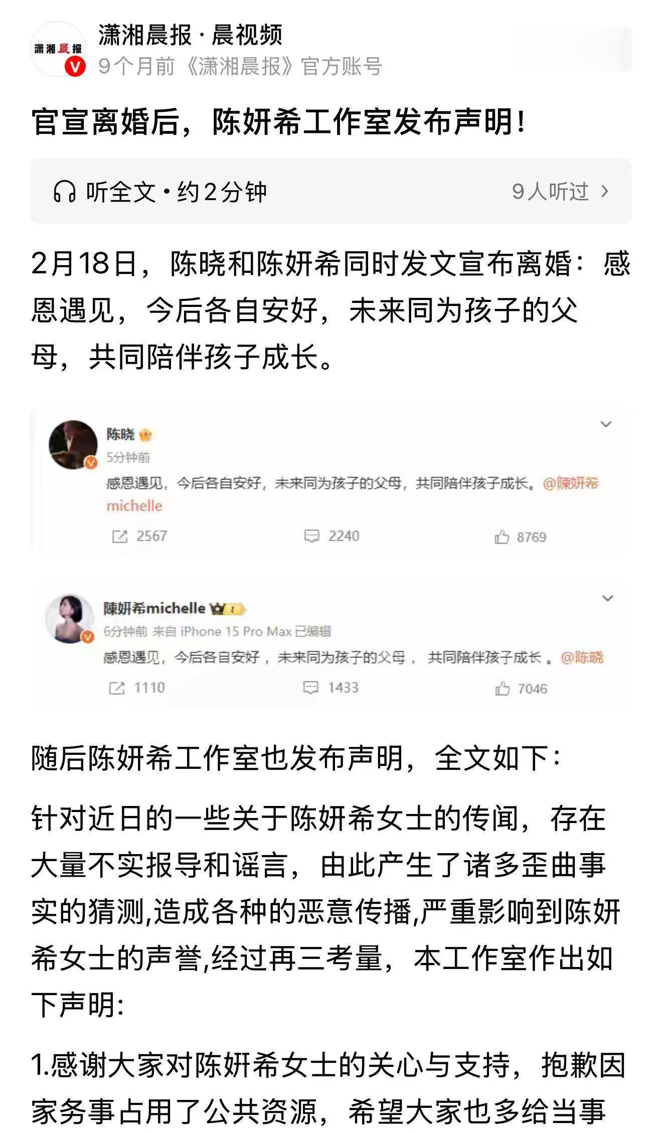 然后随之即来的就是陈妍希发布的针对婚内一系列谣言的辟谣声明。