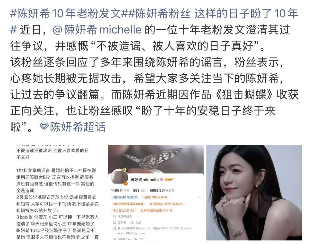 她的那些谣言随着十年老粉发的辟谣整合贴再次浮上水面。