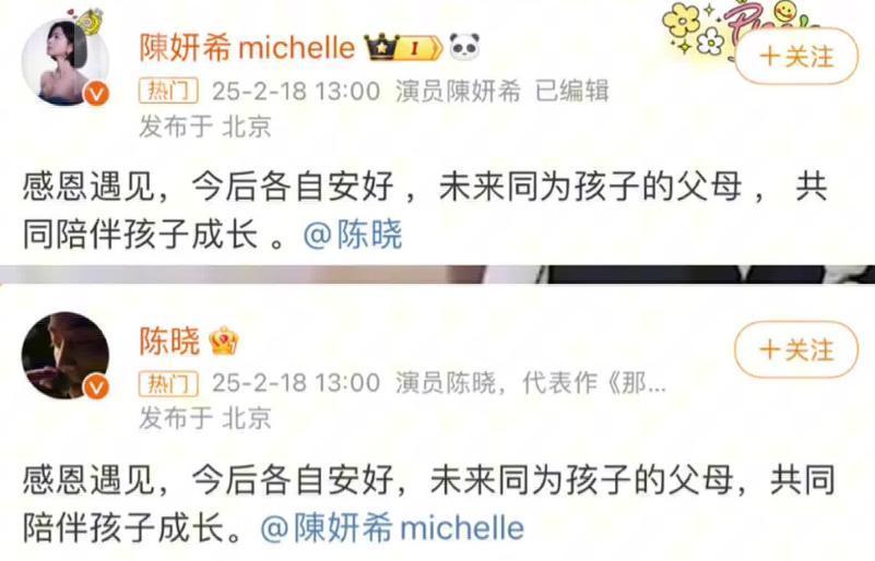 今年年初,陈晓和陈妍希官宣离婚。